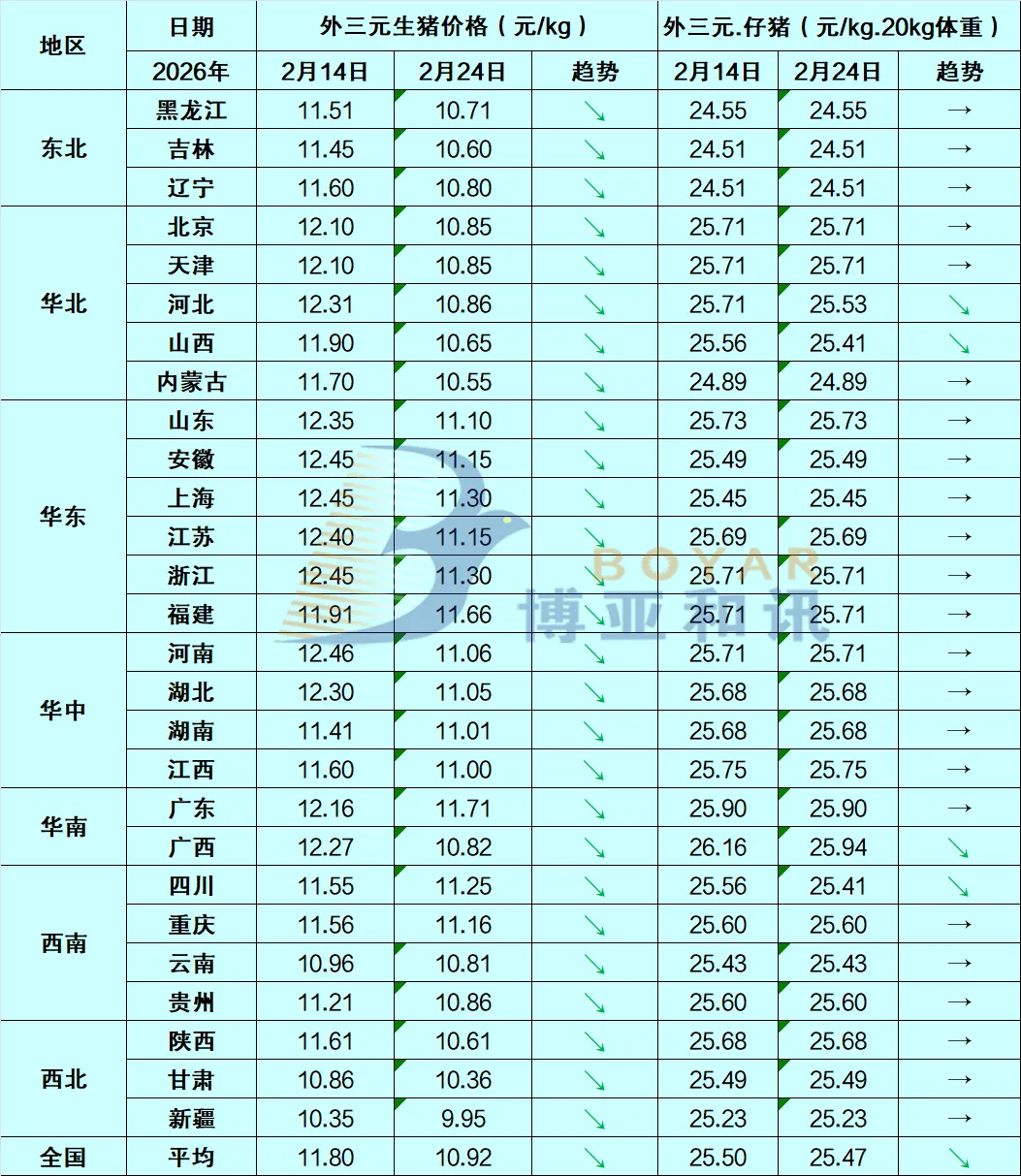 猪价跌破11元/kg、肉鸡苗上涨、关税风波再起、VE厂商密集涨价…2026年春节期间畜牧市场动态汇总及简评