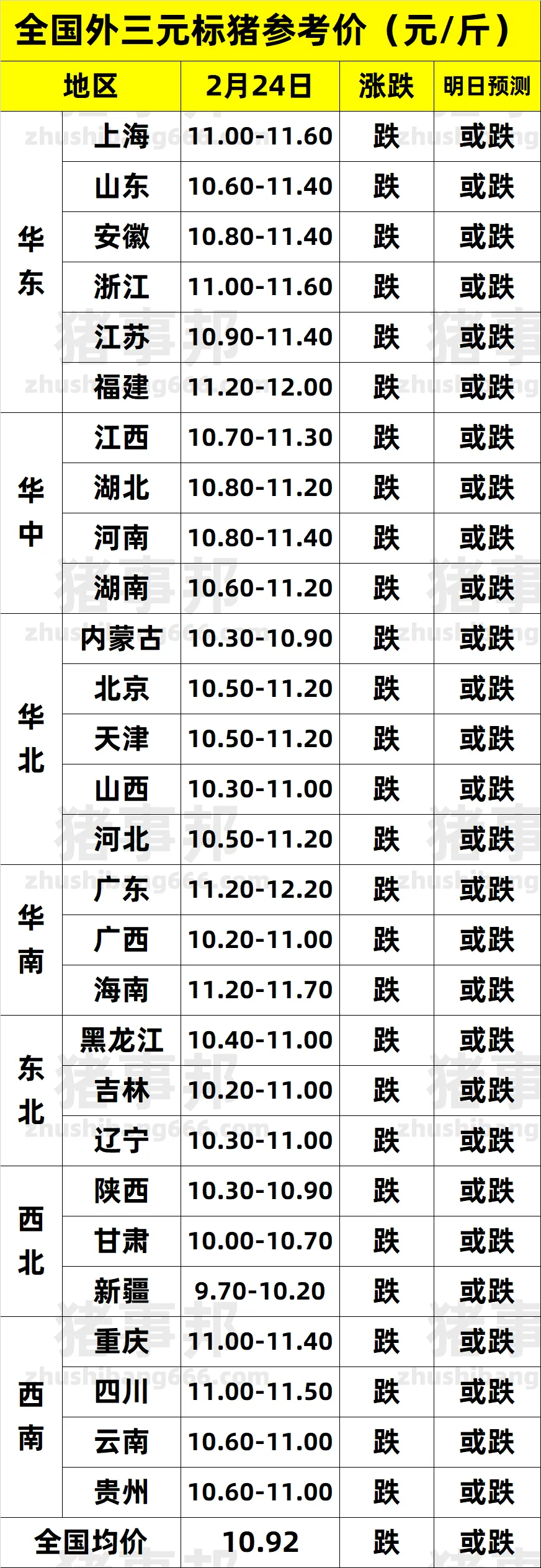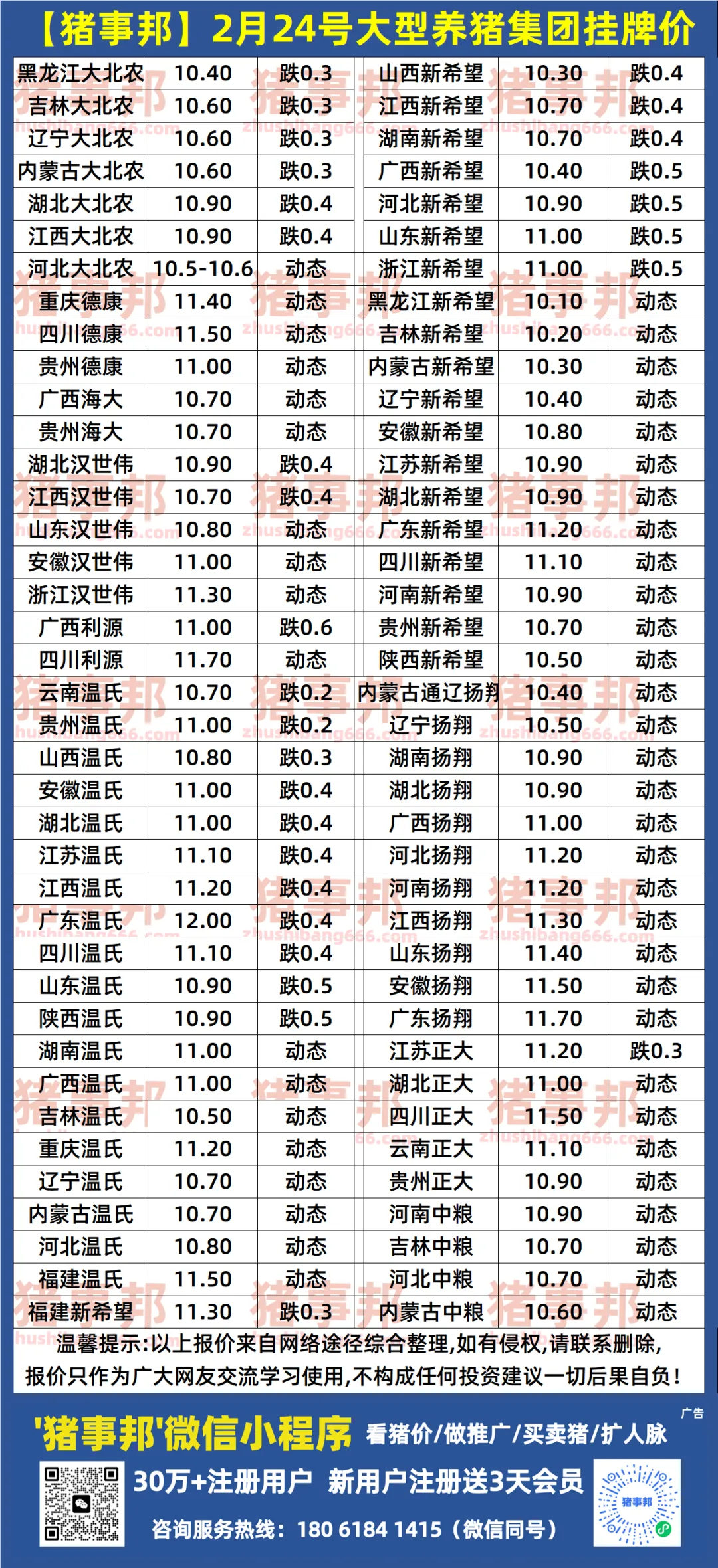 猪事邦|| 2月24日猪价汇总(猪价以跌为主!)