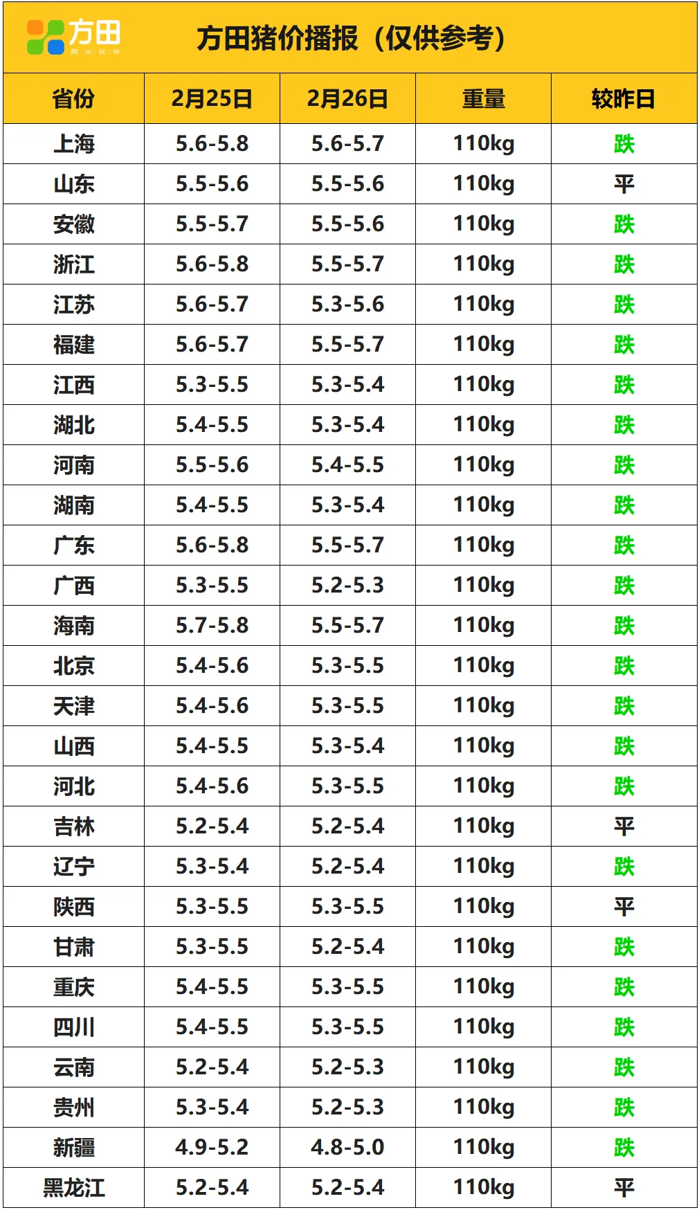 猪价丨2月26日 明日猪价早知道 养羊网 2026-02-25 猪价丨2月26日 明日猪价早知道 养羊网 2026-02-25 上一篇:【猪价预测】2月27-3月1 猪价预测 下一篇:2月25日猪价|继续下调! 您可能还会对下面的文章感兴趣111: 相关文章 近期价格更新!!! 2018年农村发展什么种植项目更赚钱? 近期价格更新!!! 近期价格更新!!!