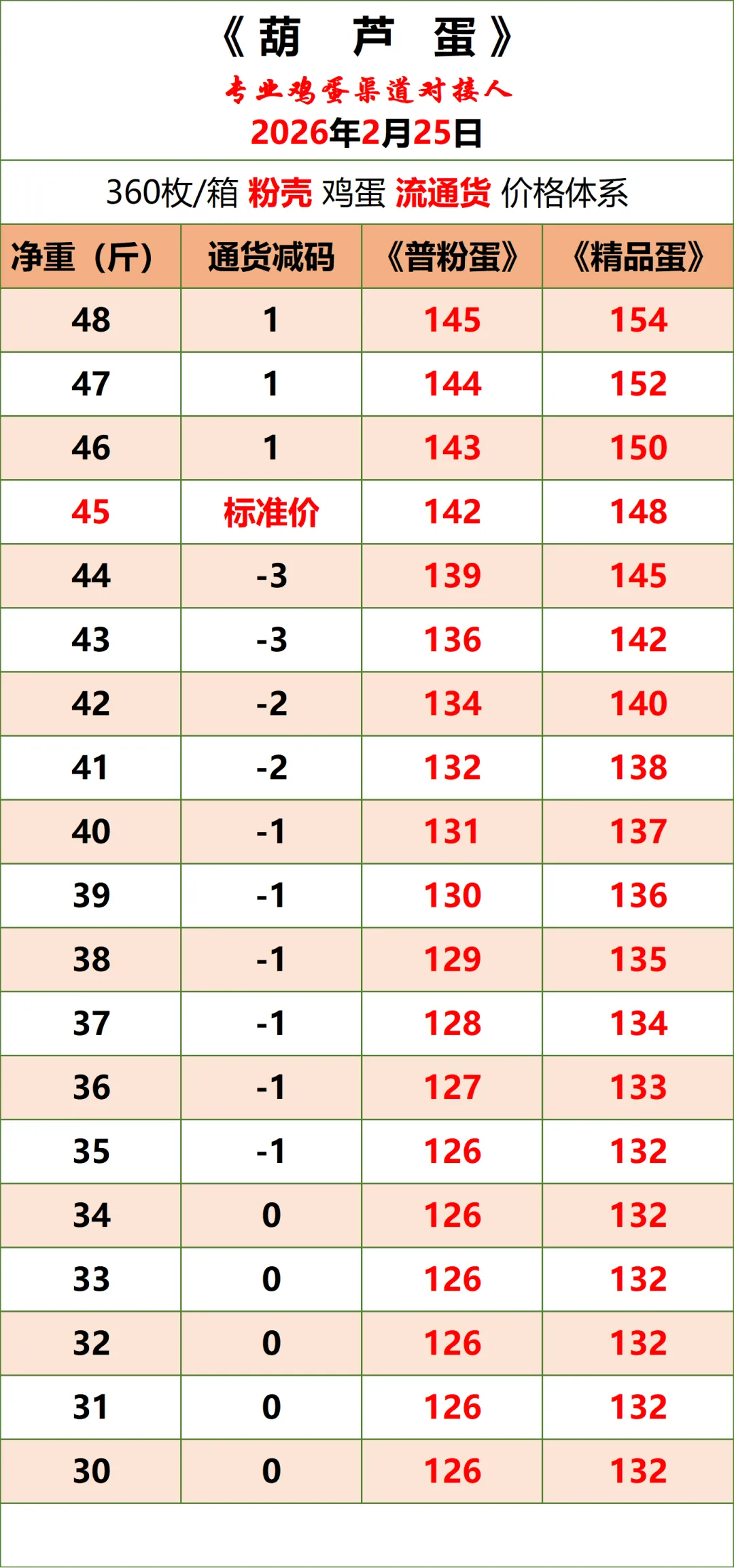 2026年2月25日《葫芦蛋》鸡蛋价格