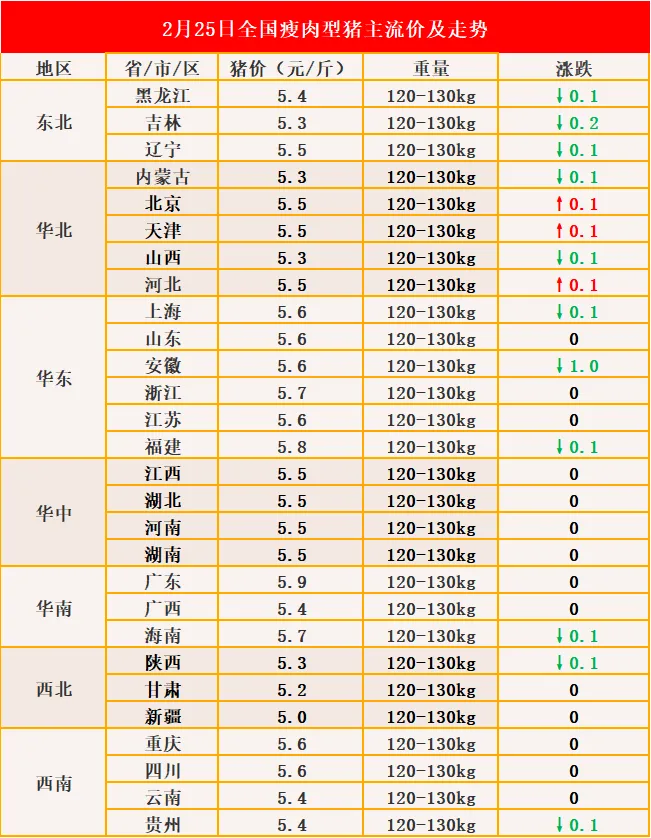 【2月25日】涨跌调整,猪价大部持平