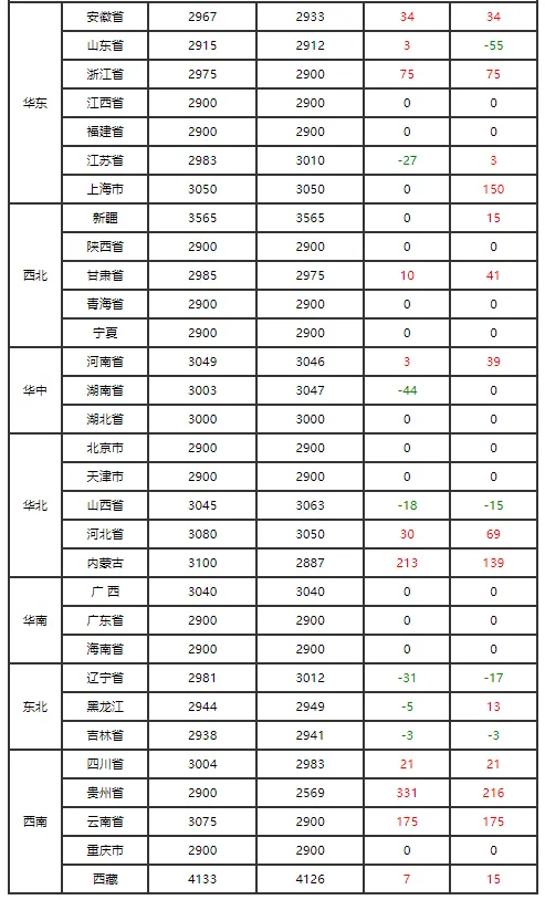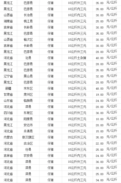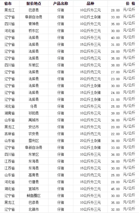 全国各地区今日猪价