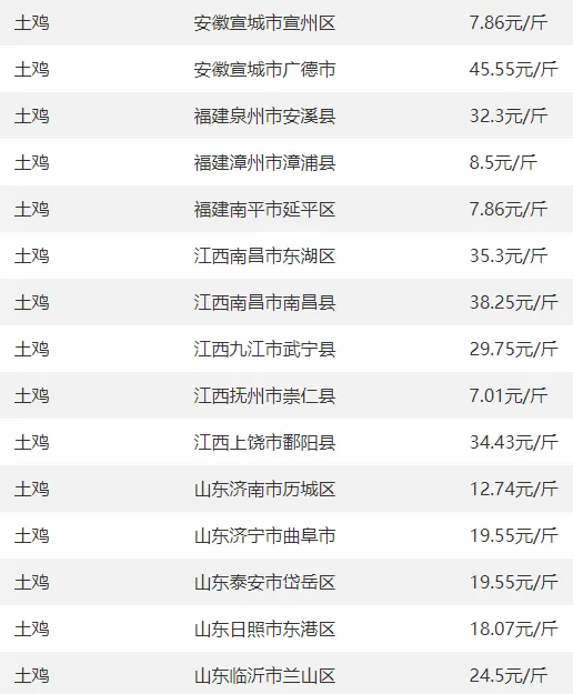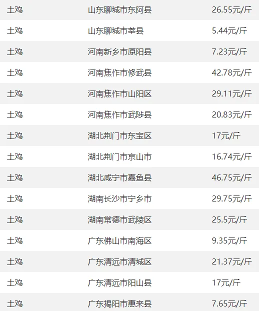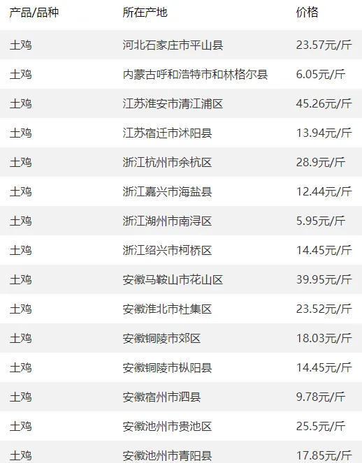 肉鸡、土鸡、鸡苗、鸡蛋等今日报价