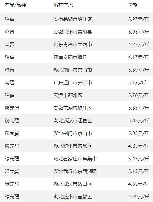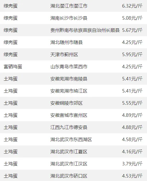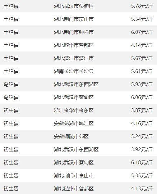 全国部分地区鸡蛋价格