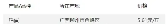 广西部分地区鸡蛋价格