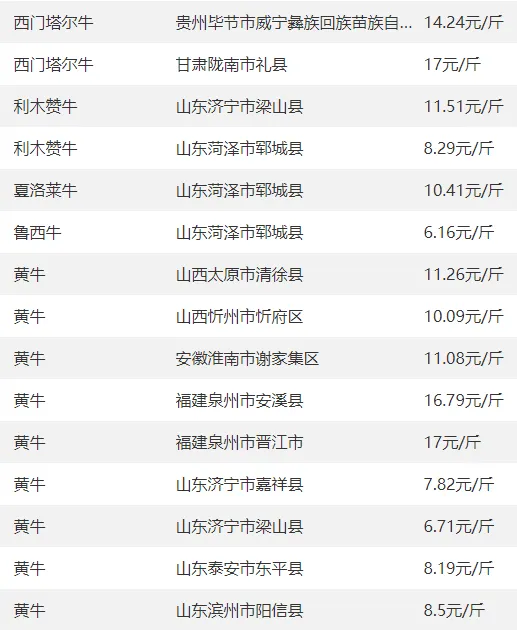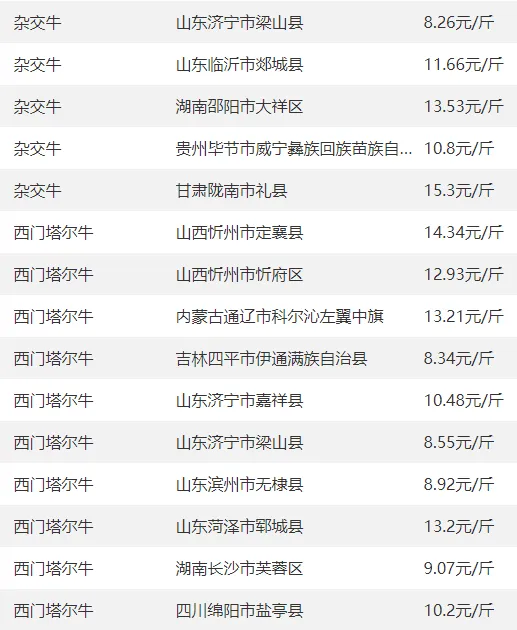 全国部分地区牛价