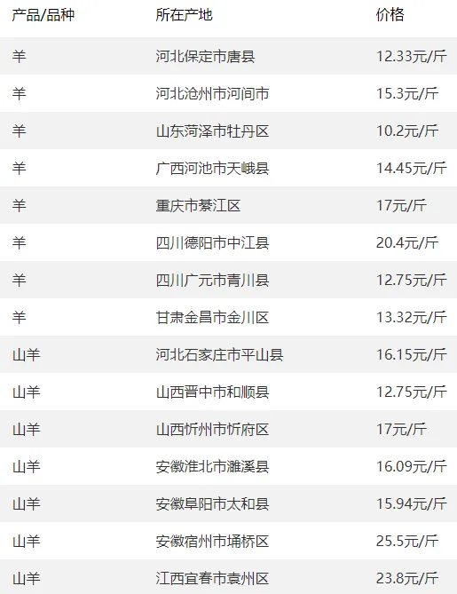 3. 全国活羊价格普遍上涨,育肥绵羊主流价12.0-13.5元/斤,育肥山羊13.0-16.0元/斤。