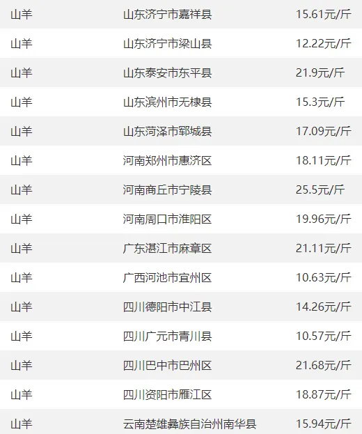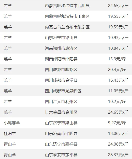 全国部分地区羊价