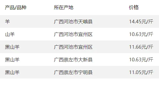 广西部分地区羊价