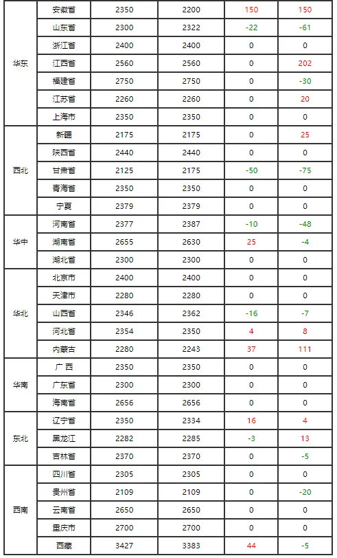 4. 山东、河北等地牛价持平,均为13.2-14.4元/斤,新疆牛价12.5-13.3元/斤,略低于全国均值。