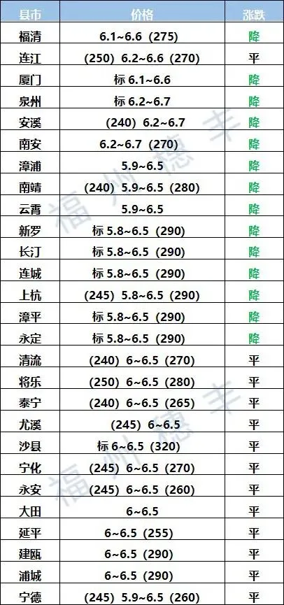 福建省生猪价格