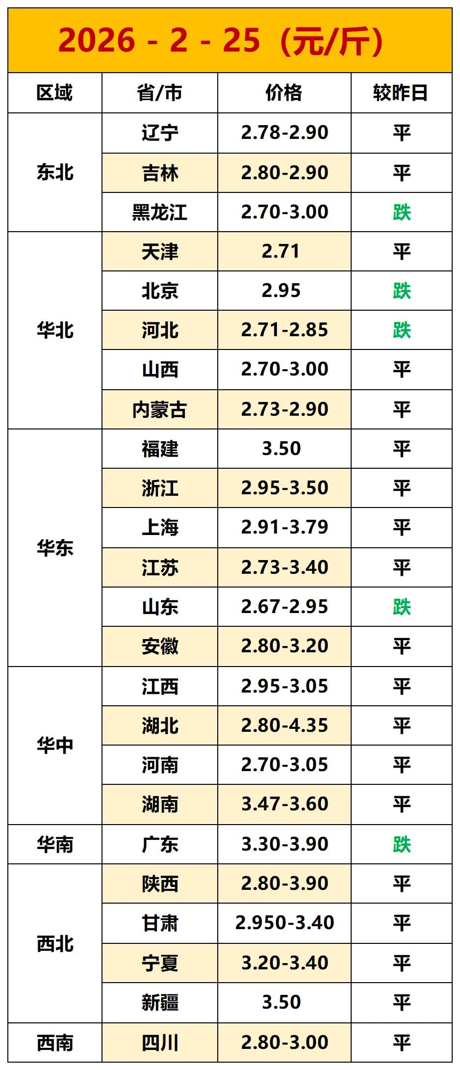 蛋价日评:今日鸡蛋价格下跌,较节前下跌1.06元/公斤。假期期间各地价格下跌为主,养殖环节出货停滞,贸易环节消化库存为主。节后淡季后,需求端支撑或再度走弱。