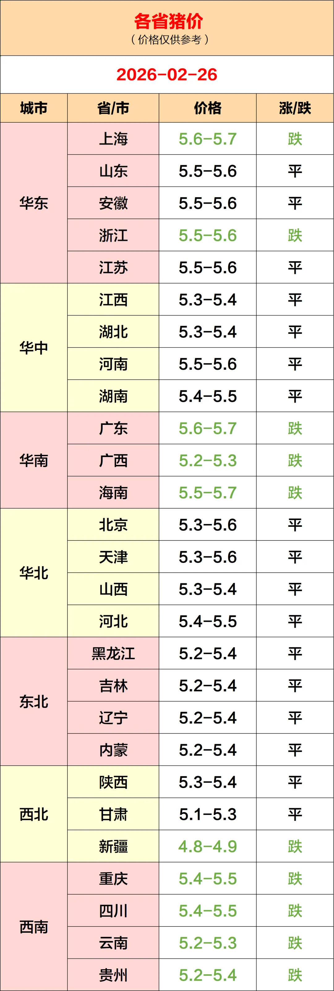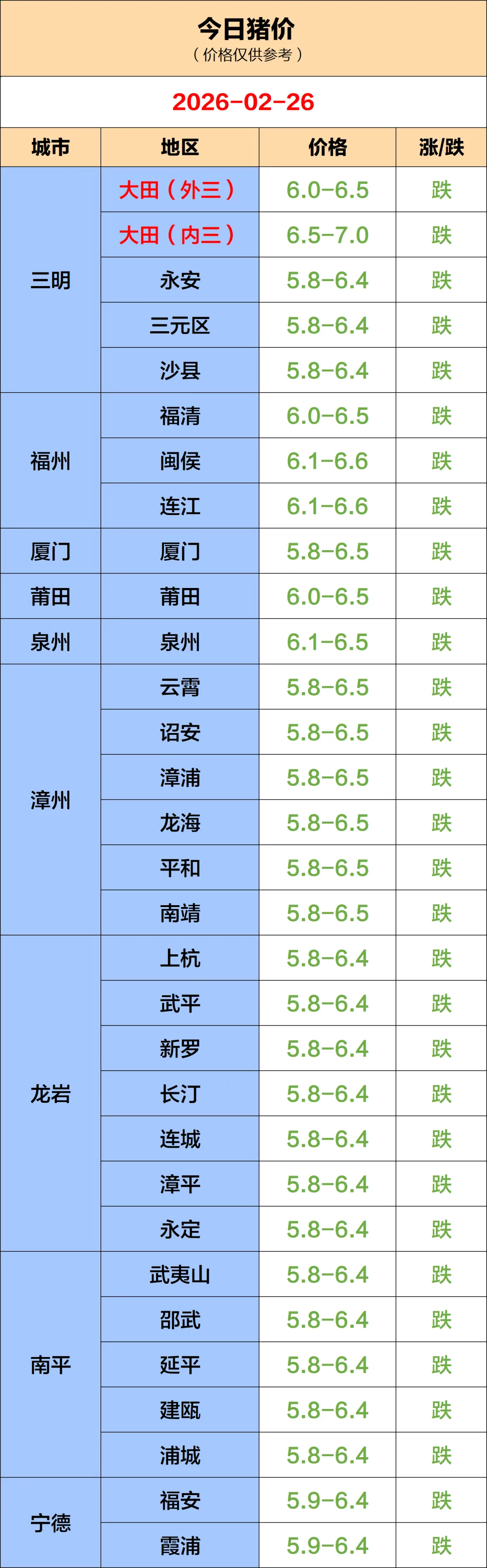 温馨提示:各场因猪的品种、品质、大小、单批销售数量等因素不同,实际售价均可能有所差异,以上报价仅供参考。(以上数据参考来源:福建鸣洋)