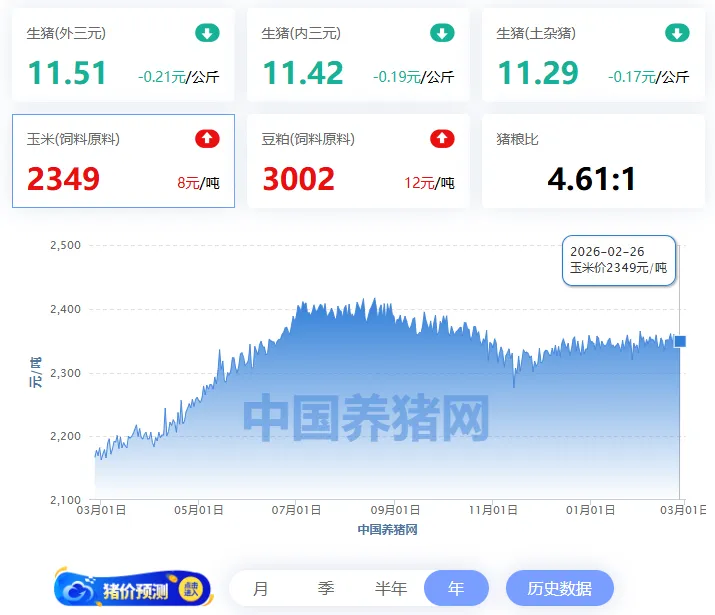 【明日猪价】2026.2.27全国猪价多地止跌,局部小幅回调,短期弱势维稳,适时出栏