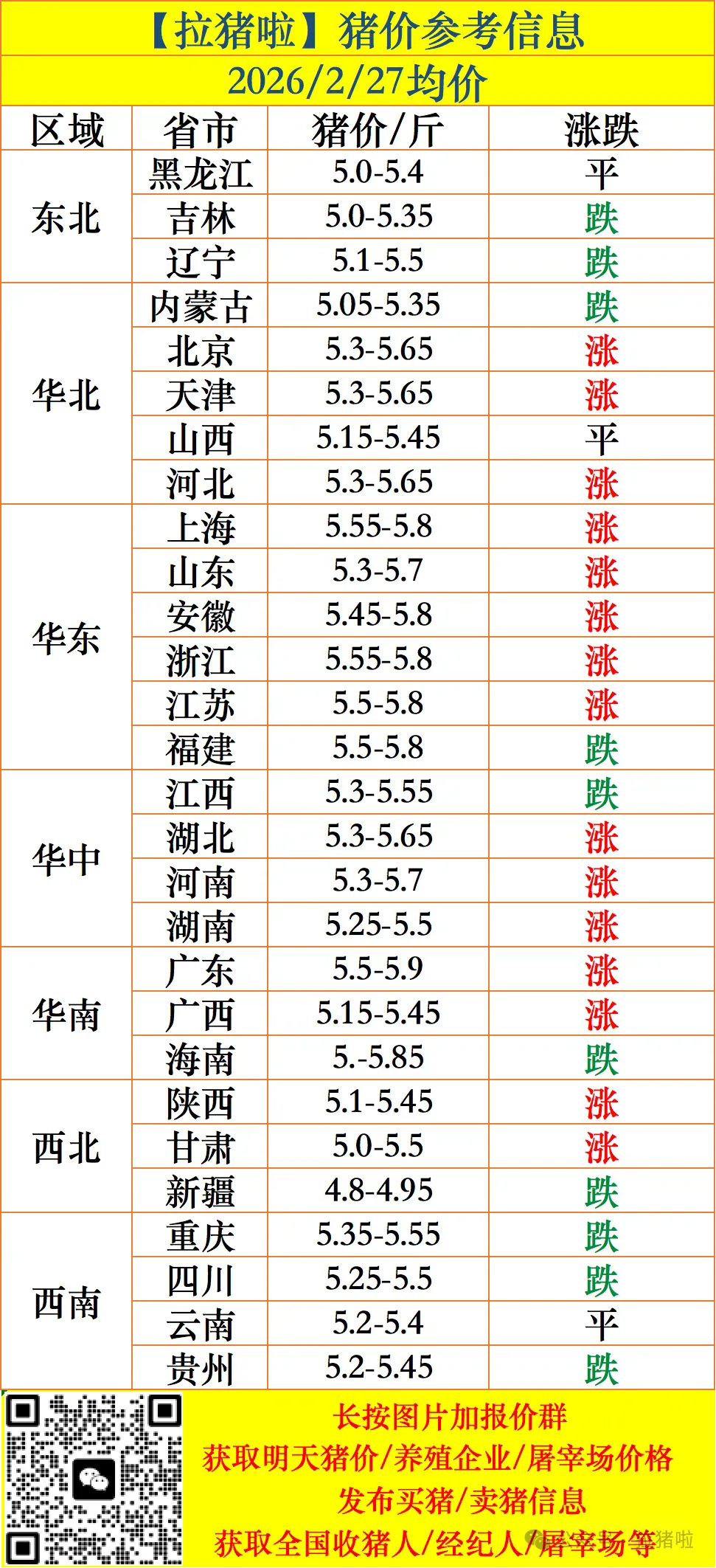 【拉猪啦】2.27-猪价行情与买卖猪信息!(多地上涨!)
