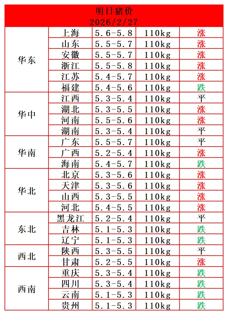 2026.2.27-明日猪价(好消息,猪价又上涨了!) 养羊网 2026-02-26 2026.2.27-明日猪价(好消息,猪价又上涨了!) 养羊网 2026-02-26 上一篇:明日猪价(2026年02月27日,猪价上涨!) 下一篇:2026年2月27日 全国猪价 您可能还会对下面的文章感兴趣111: 相关文章 ??湾区的鸡蛋?价格好贵 打工和要饭最大的区别,太真实了? 已经到了扫码领鸡蛋的年纪啦! 人真的挣不到认知以外的钱