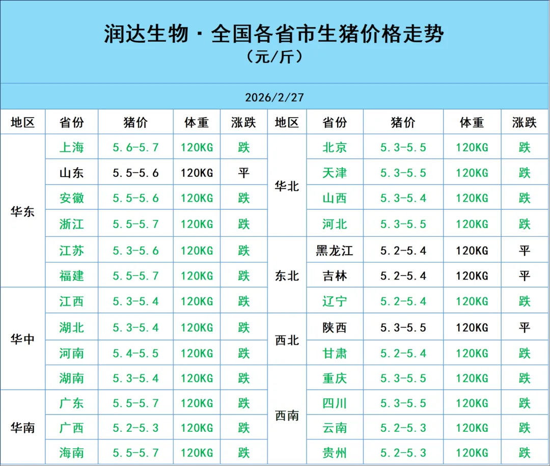 2026年2月27日明日猪价行情:连续下跌,开始企稳 养羊网 2026-02-26 2026年2月27日明日猪价行情:连续下跌,开始企稳免责申明:本微信服务平台资料来源于网络收集,以供给大家学习、交流为目的,请诸位在阅读后,尽快删除,尊重资料原作者,支持正版。若所列资源侵犯了您的权益请直接留言,立刻删除! 养羊网 2026-02-26 上一篇:【国茂分享】今 日 猪 价(仅供参考) 下一篇:养猪客|2026.2.27|明天猪价分析(只供参考) 您可能还会对下面的文章感兴趣111: 相关文章 低价供应活猪,白条猪,广西猪,可开A票 求推荐好吃的羊肉? 2025年4月13日全国各地生猪价格信息 每天现杀黑山羊肉