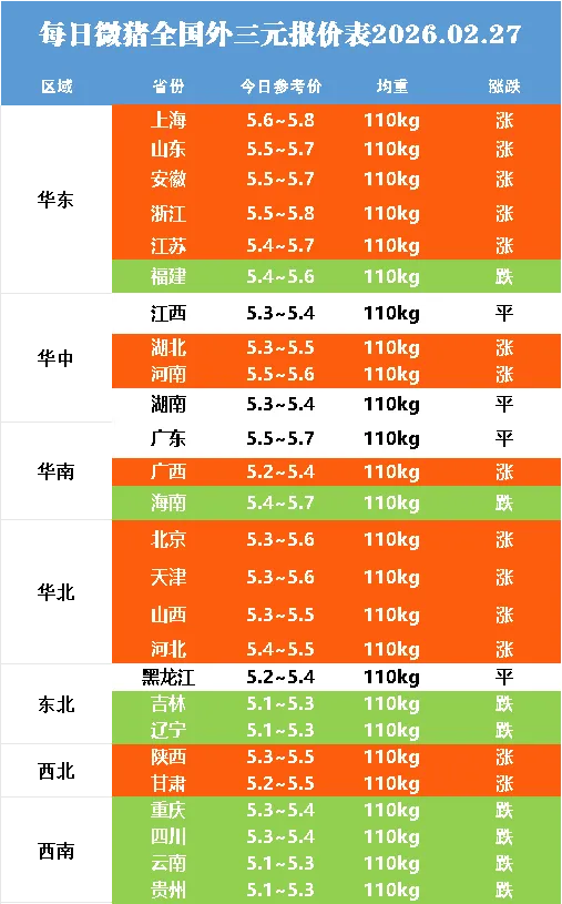明日最新猪价2026.02.27——多地触底回弹点击蓝字关注 猪价不错过