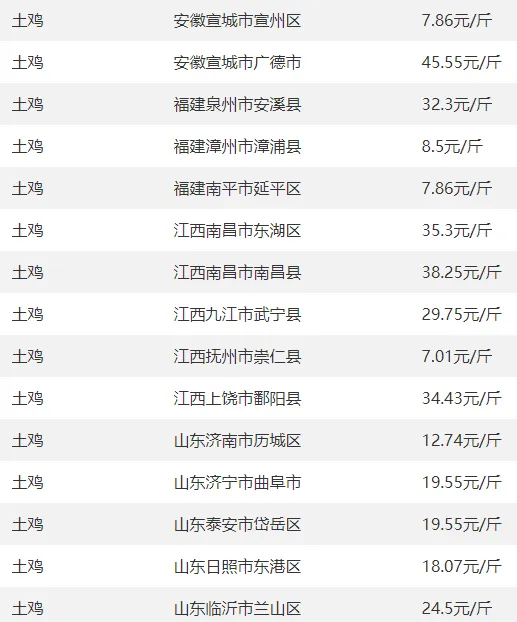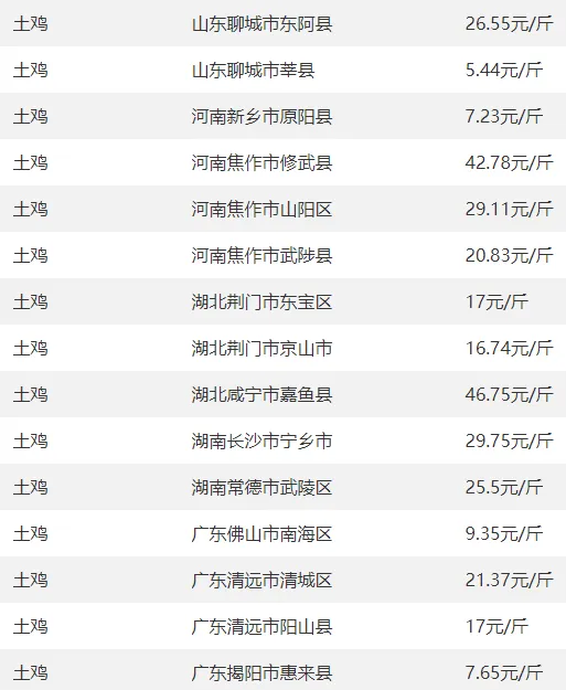 肉鸡、土鸡、鸡苗、鸡蛋等今日报价