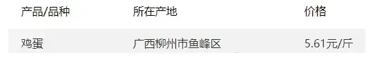 广西部分地区鸡蛋价格