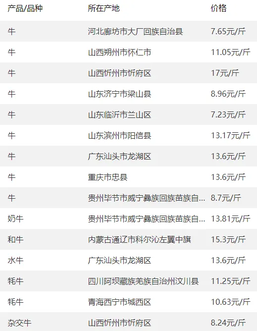 3. 广东优质黄白花牛源报价达16.5元/斤,福建福州优质牛源15.8-17.0元/斤,华南地区领跑牛价。