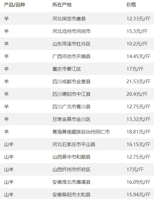 4. 全国羊价呈上涨态势,山西育肥寒羊公羔11.5-12.4元/斤,绒山羊30斤报价17.5元。