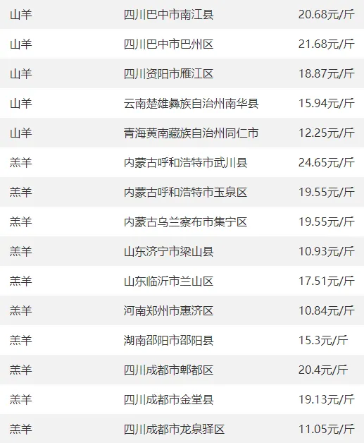 全国部分地区羊价