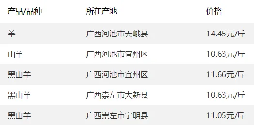 广西部分地区羊价