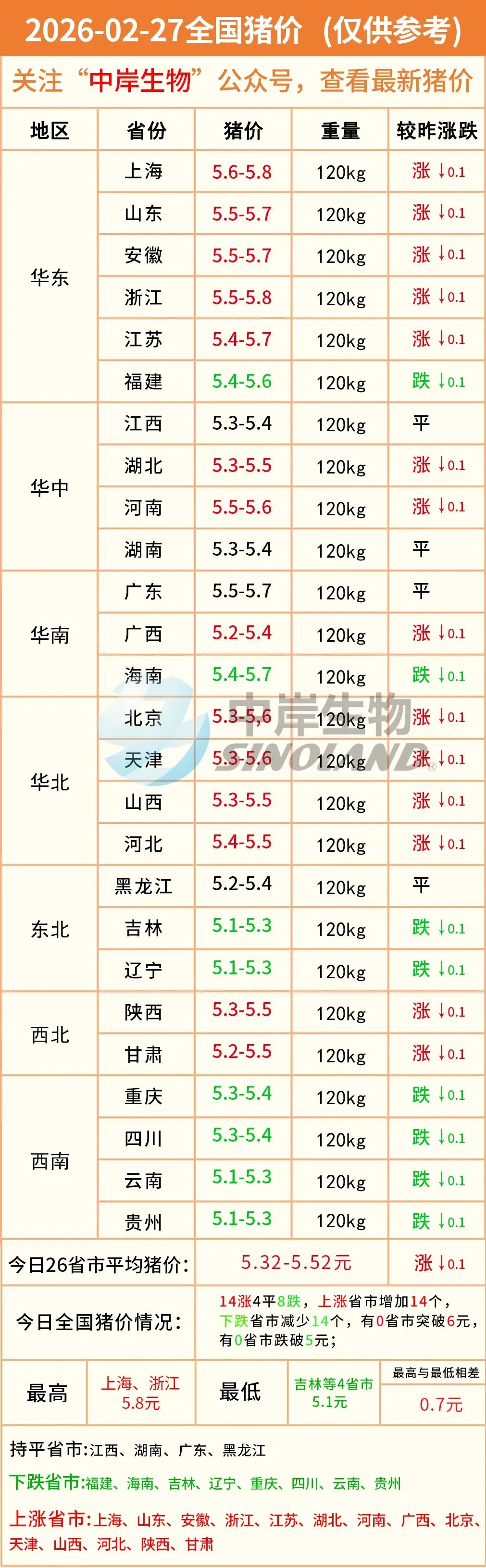 明日猪价|2026-02-27全国最新猪价(猪价已更新!) 养羊网 2026-02-26 明日猪价|2026-02-27全国最新猪价(猪价已更新!)营销中心丨0731-83806009技术服务丨0731-83806019 养羊网 2026-02-26 上一篇:【明日猪价】2026.2.27全国猪价! 下一篇:今日猪价|【仔猪价格】2026.2.26 您可能还会对下面的文章感兴趣111: 相关文章 【明日最新猪价】2月25日全国猪价(已更新!) 2025年4月13日全国各地生猪价格信息 特朗普操蛋心 【悦丰饲料】2026年2月24日猪价播报