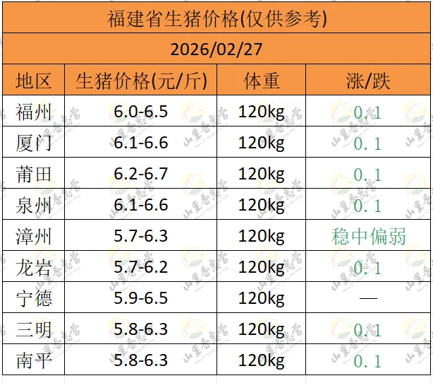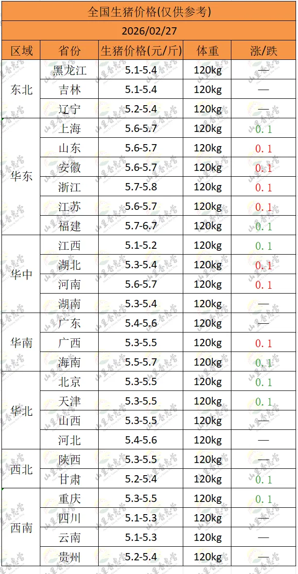全国各地明日猪价(2026.02.27)-山里香惠营