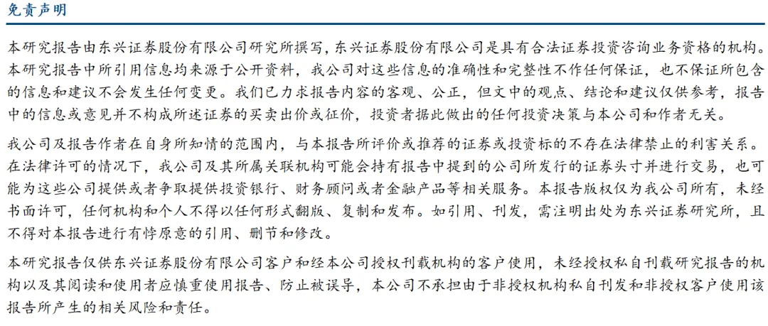 本公众号所载内容仅面向专业机构投资者,任何不符合前述条件的订阅者,敬请订阅前自行评估接受订阅内容的适当性。订阅本公众号不构成任何合同或承诺的基础,本公司不因任何订阅或接收本公众号内容的行为而将订阅人视为本公司客户。因本资料暂时无法设置访问限制,若您并非东兴证券客户中的专业投资者,还请取消关注,请勿订阅、接收或使用本订阅号中的任何信息。我们对由此给您造成的不便表示诚挚歉意,非常感谢您的理解与配合!?