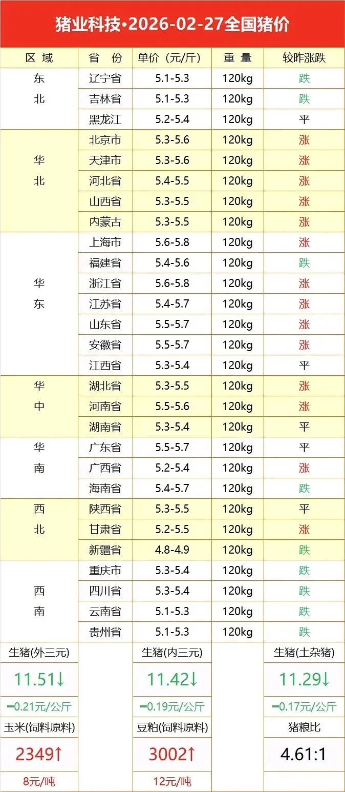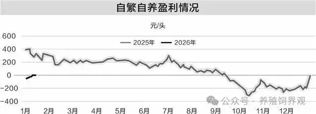 2026年1月以来,市场出现了一些微妙变化。受前期持续亏损驱动以及部分企业主动控制出栏体重影响,市场供应压力短期略有缓解。同时,标猪与肥猪价差的扩大,增强了养殖户的惜售情绪,北方地区二次育肥的补栏意愿也有所回暖,共同对短期猪价形成了微弱支撑。 卓创资讯分析师指出,基于能繁母猪存栏量等先行指标判断,2026年上半年生猪供应端的压力依旧偏大,市场供大于求的趋势预计仍将持续。 3、供需拐点未明,下半年或现转机 面对持续低迷的市场,行业最为关切的问题是:转折点何时到来?综合多家分析机构的观点,短期来看,明确的供需拐点尚未出现,市场可能仍需一段时间的震荡磨底。 上海钢联数据指出,2025年12月123家规模场商品猪存栏量为3692.16万头,环比减少0.23%,但同比增加4.72%。85家中小散样本企业12月份存栏量为155.58万头,环比微降0.09%,同比上涨8.17%。这意味着生猪产能的根基依然雄厚。分析认为,当前行业的产能去化以能繁母猪存栏量缓慢下降为主,整体去化速度并不快。若在市场竞争、企业长期战略等因素影响下,减产执行不及预期,产能去化的进程还可能进一步延缓。 因此,初步判断2026年上半年供应压力难以得到根本性缓解。预计在春节过后,市场将步入季节性消费淡季,供大于求的格局可能更加突出。真正的转机或许需要等待更长时间。行业分析普遍将趋势性好转的期望寄托于2026年第三季度。随着下半年传统消费旺季的开启,叠加产能持续去化的潜在效果逐步显现,行情有望自二季度末或三季度初起逐步回暖。 此外,玉米、豆粕等饲料原料在春节前备货期内,由于部分供应偏紧,价格呈现稳中有涨的态势。但长周期来看,现阶段饲料价格仍处相对低位,且多呈窄幅调整,对养殖端成本的边际影响较小。因此,生猪养殖近期的盈利情况,主要仍由生猪自身的市场价格波动所主导。 【行业观察】当前生猪市场正处于漫长的产能出清与格局重塑阶段,中长期价格走势仍由供需基本面主导。市场修复不会一蹴而就,养殖主体需在控制成本、保证资金链安全的前提下,灵活调整出栏节奏,并密切关注能繁母猪存栏等前瞻指标的变化,以应对持续的市场磨底期。 来源: 证券时报