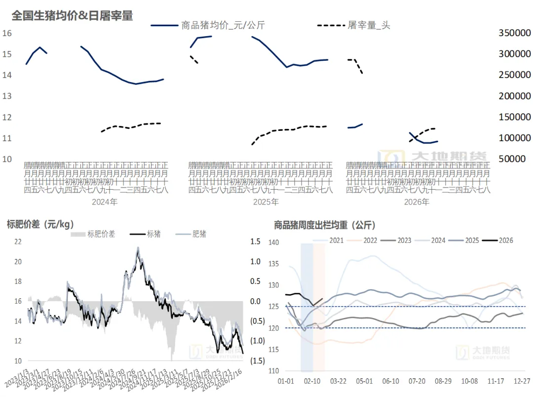 核心观点:近弱远偏强? 节后供需双双恢复中,但供给压力仍占据主导,连续下跌至低位后惜售和零星二育使猪价跌势暂缓。盘面交易节后跌价压力后,淡季还有季节性补库故事可讲,但整体来说供应量、重皆不低,近月反弹偏空思路,关注后续二育与冻品动向。