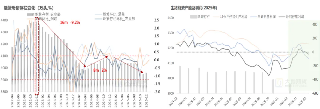 能繁产能:近空远偏多能繁去化幅度尚且有限,预计还要继续磨底。年后再回亏损后,有望助推产能的去化速度。