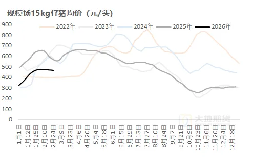 短期仔猪补栏观望为主,价格小幅调整;后续进入季节性补栏集中窗口期预计还有一定上调空间。据涌益样本监测,截至2月27日,当周6.5kg仔猪市场均价359元/头,较前周-6元/头;15kg仔猪市场均价463元/头,较前周-8元/头。