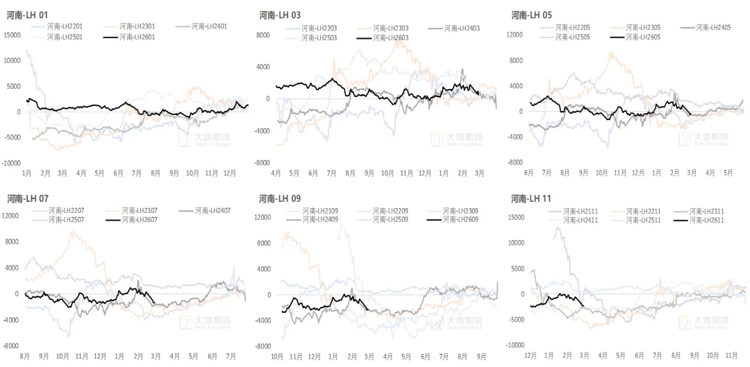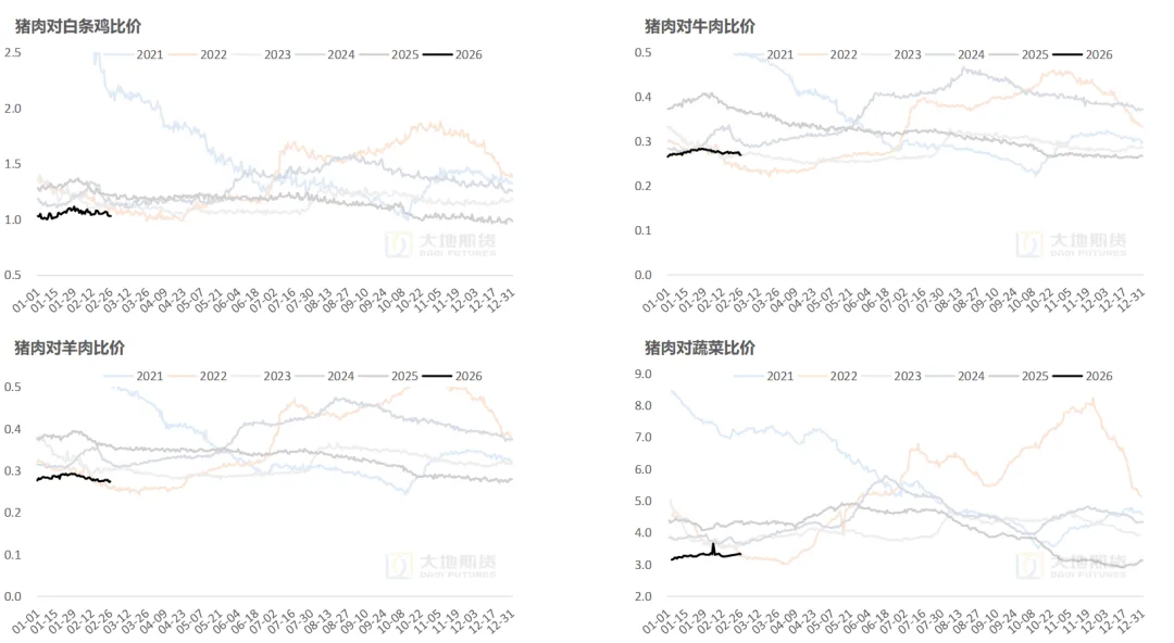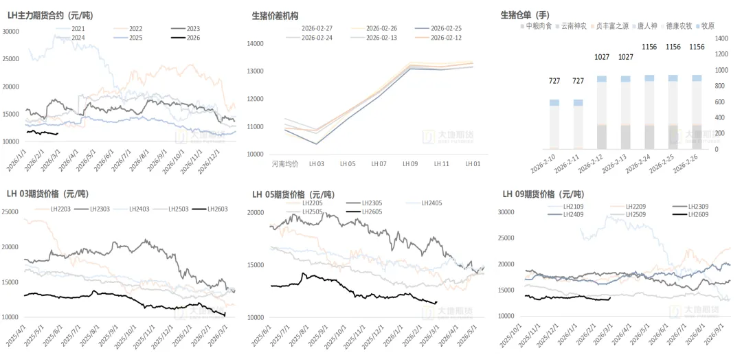 近端理论供给量高位延续,下半年有望迎来趋势性收缩。年底至明年四五月份供给基数基本敲定,近月供应压力持续,中期猪价仍承压。下半年合约主要受产能预期影响,行业各环节普遍进入亏损状态后又阶段回正,亏损程度和持续时间尚且不深,官方2025年底能繁存栏数据相对不及市场预期,且三方数据1月能繁样本数据仍有略增表现,去产是否加速还要打个问号,去产预期支撑下谨慎乐观看待远月空间。