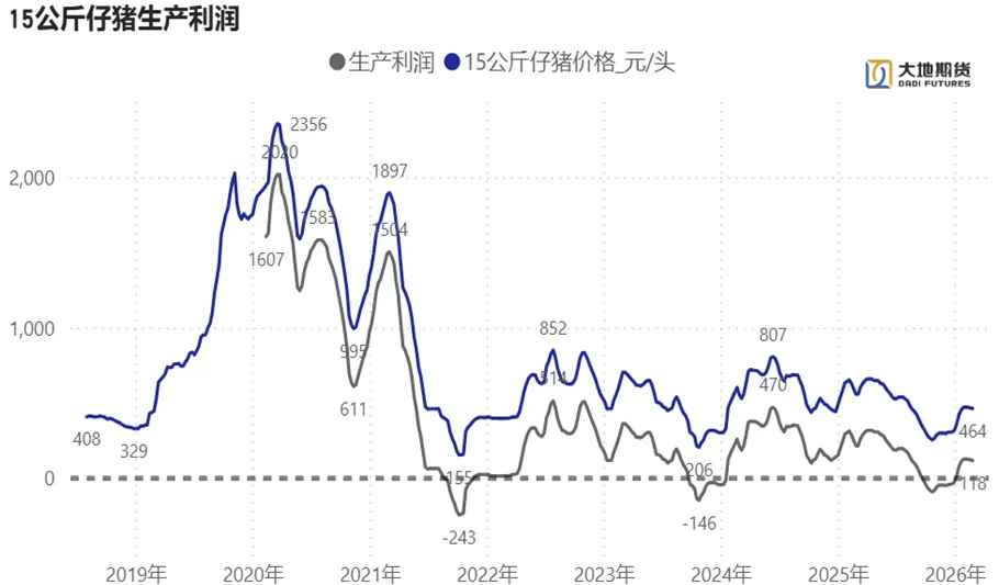 仔猪出栏利润: 截至2月27日,测算15kg仔猪出栏利润118元/头左右,较前周利润变化减9元左右。