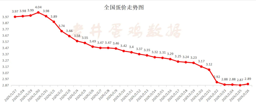 昨天,鸡蛋全国均价2.89元/斤,较前日增0.02元/斤,增幅0.69%!