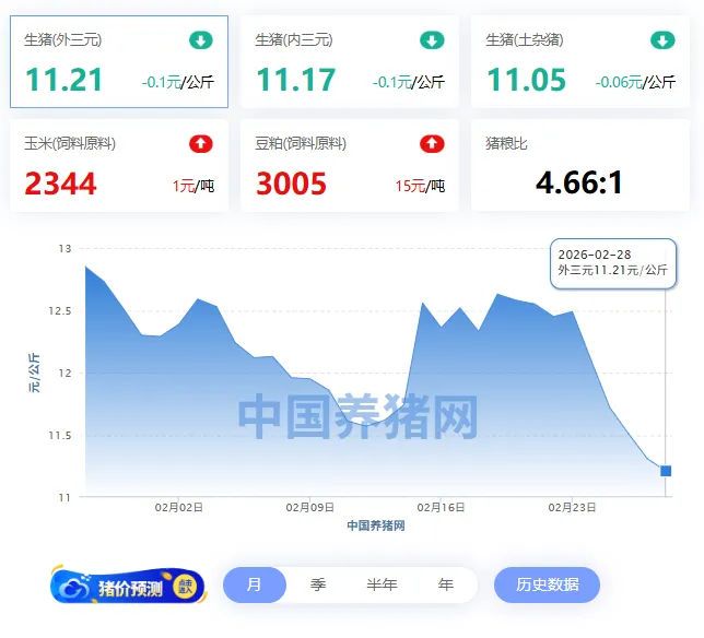 2026年02月28日-中国养猪网 全国玉米价格走势图及涨跌表