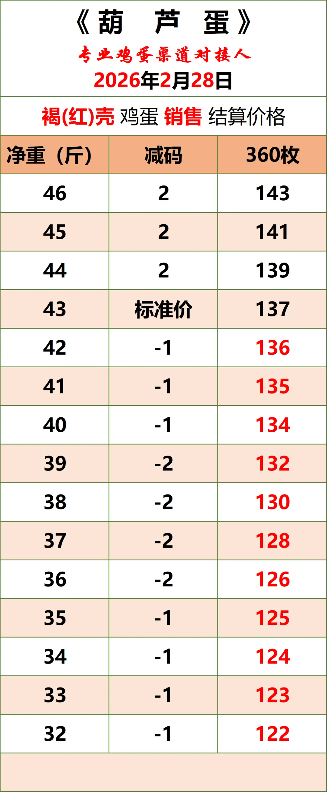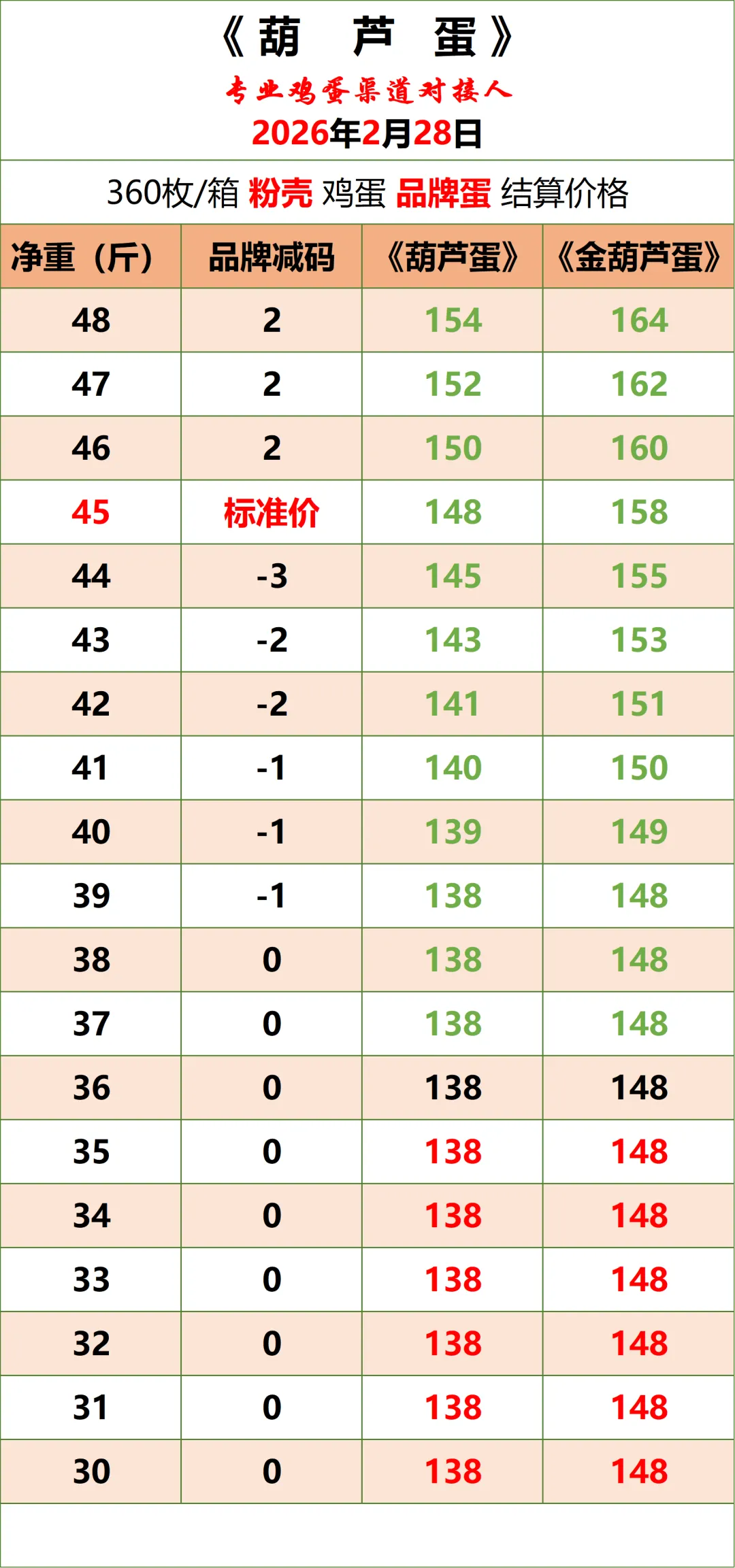 2026年2月28日《葫芦蛋》鸡蛋价格