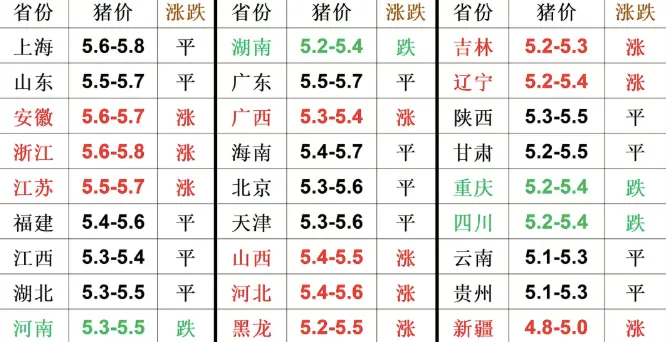 今日超前猪价| (2026.3.1)仅供参考 养羊网 2026-02-28 今日超前猪价| (2026.3.1)仅供参考 养羊网 2026-02-28 上一篇:2月28日仔猪价格:猪价5天跌超1元/公斤,仔猪价格涨幅大幅收窄! 下一篇:2026年2月28日猪价:涨跌互现,局部偏强,整体偏弱 您可能还会对下面的文章感兴趣111: 相关文章 今日鸡蛋价格(2026.1.8) 近期价格更新!!! 2025年4月13日全国各地生猪价格信息 猪价马上要上涨?猪价大跌、暴跌大改!春节前猪价最新走势!