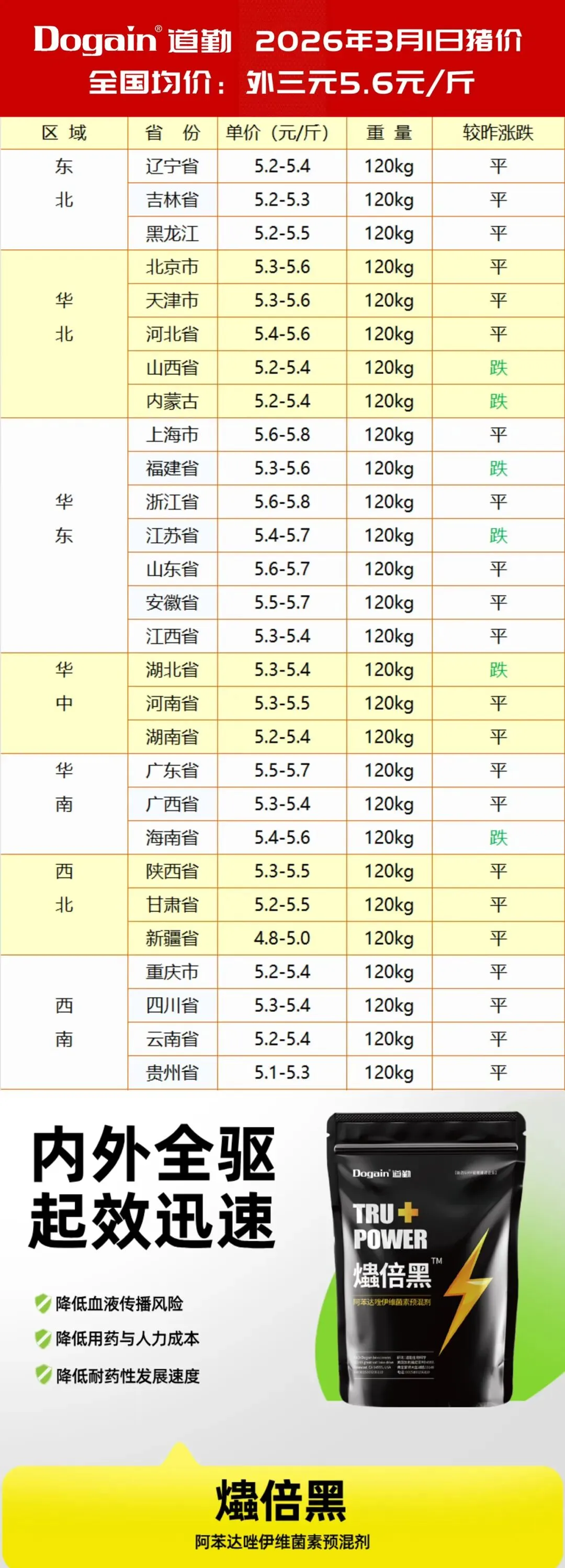 3月1日,猪价信息 养羊网 2026-02-28 3月1日,猪价信息 养羊网 2026-02-28 上一篇:2026-03-01明日猪价 下一篇:2026年3月1日猪价行情观点和操作建议 您可能还会对下面的文章感兴趣111: 相关文章 2月5日鸡蛋价格【回复“报价”免费查附近价格】 鸡蛋涨价 姐妹我是你远在成都的人脉 它说:我来更新幼儿园的新动态 乖着呢