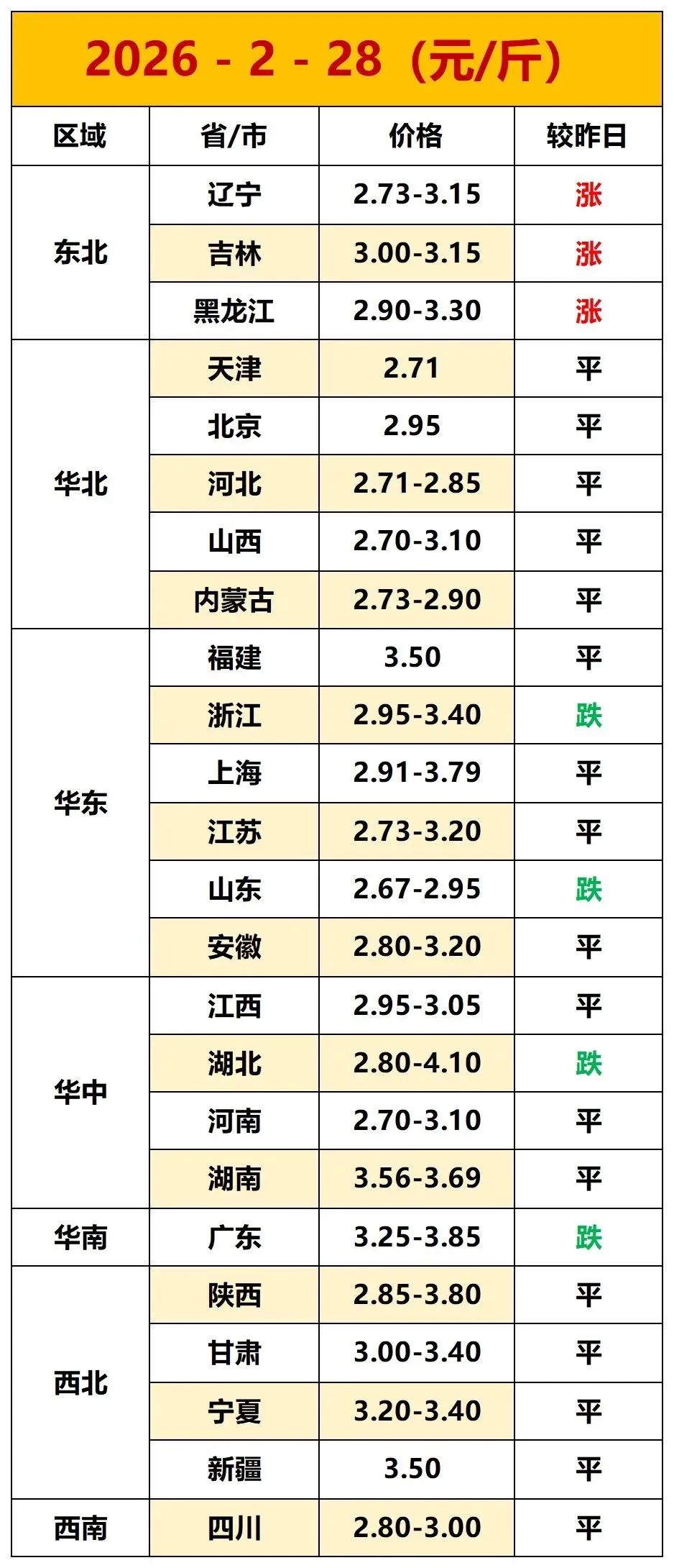 2026年2月28日-全国鸡蛋价格(部分下跌!)
