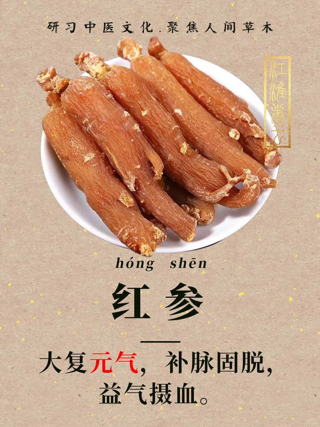 红参:益气摄血,大补元气