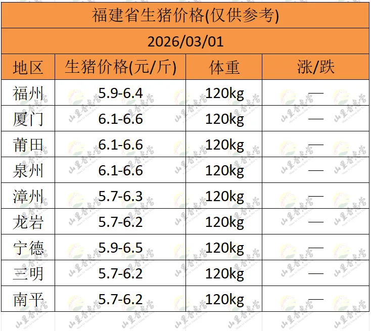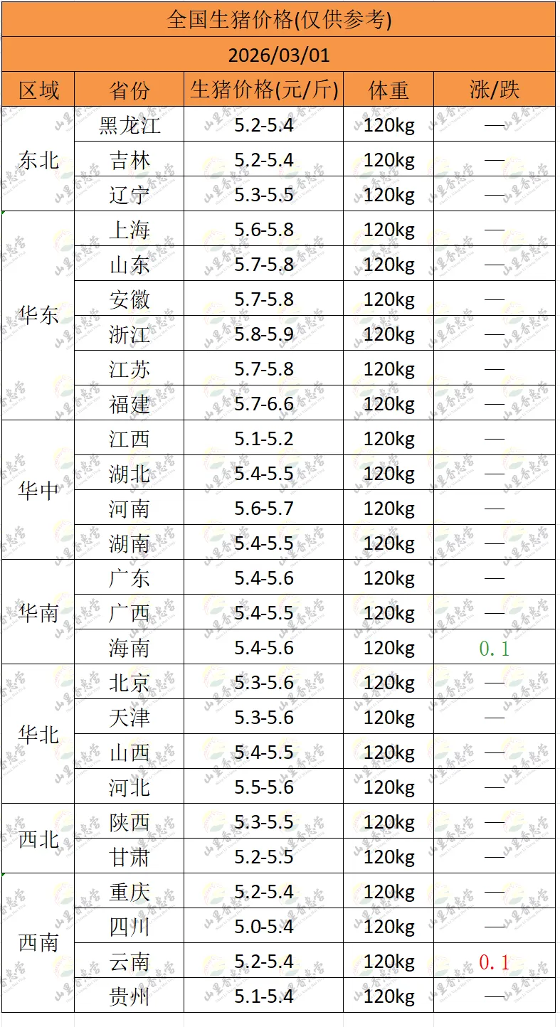 全国各地明日猪价(2026.03.01)-山里香惠营