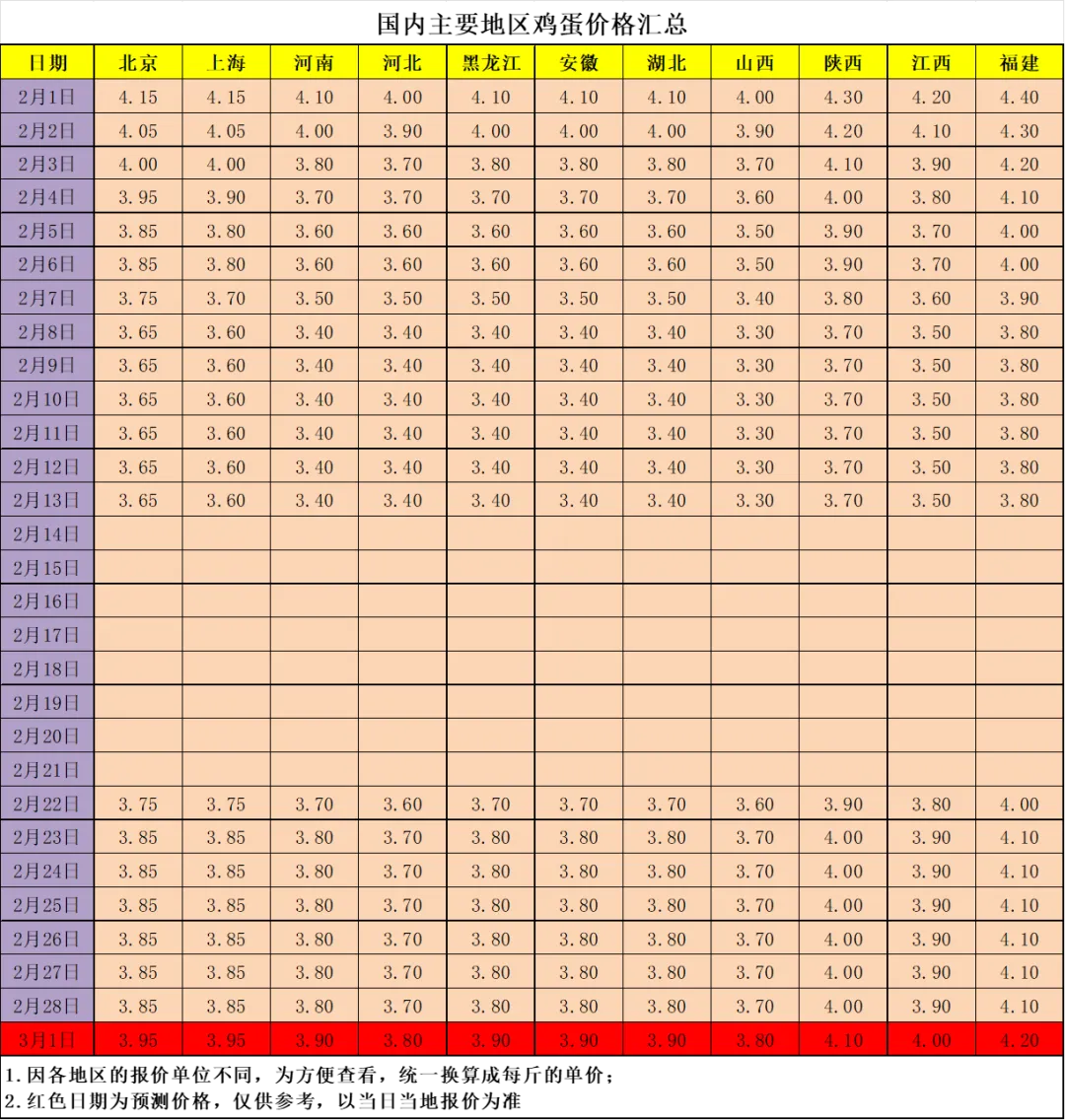 ? ? 鸡蛋预测价格仅供参考,实际价格以当地当日的报价为准。