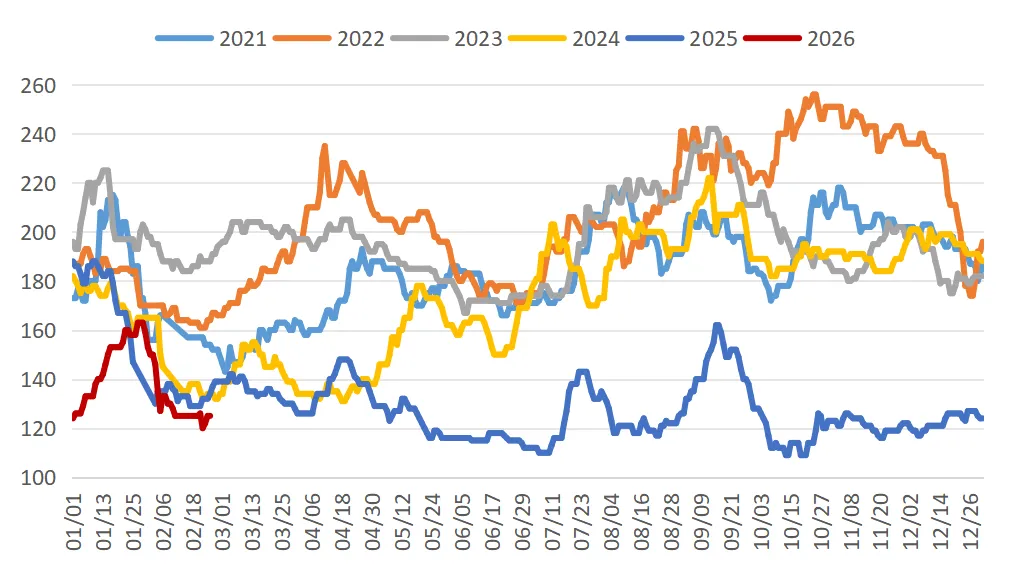 | 2026-02-28 蛋价参考(360枚/箱) | ||||
