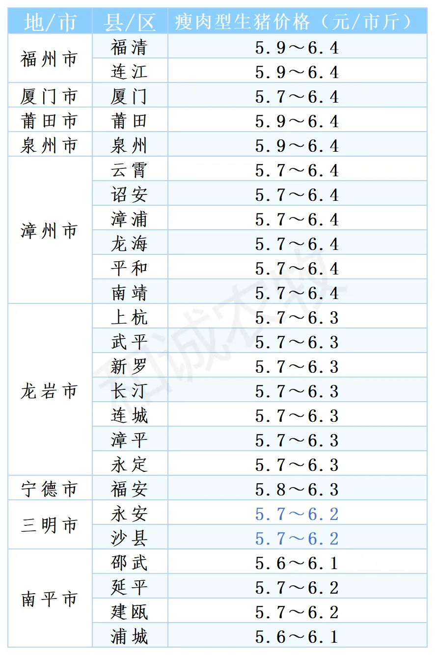 【猪价】2026.03.01福建各地区每日最新猪价