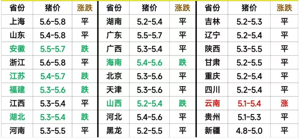 2026.3.1今日猪价格表┃3.1全猪价今日涨跌表 养羊网 2026-03-01 2026.3.1今日猪价格表┃3.1全猪价今日涨跌表 养羊网 2026-03-01 上一篇:2026.3.1今天猪价行情 下一篇:贵州农千鸡蛋价格:3月1日! 您可能还会对下面的文章感兴趣111: 相关文章 2025年4月13日全国各地生猪价格信息 花小猪你认真的吗 近期价格更新!!! 1月16日全国最新鸡蛋价格:盘动叠加,遍地开花