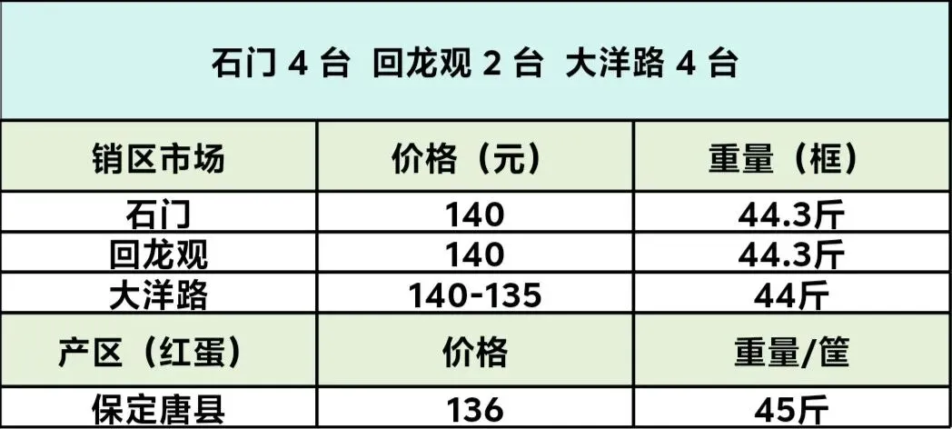 大洋路鸡蛋价格2026年 3 月 1 日报价 养羊网 2026-03-01 大洋路鸡蛋价格2026年 3 月 1 日报价大洋路 4 台,价格 140-135 元,还有货,不快,明天回 常车 4 台附近。 养羊网 2026-03-01 上一篇:明日(2026年3月2)鸡蛋价格预测 下一篇:03月01日宜春褐壳鸡蛋价格 您可能还会对下面的文章感兴趣111: 相关文章 走不出甘肃的小羊(手抓版) 近期价格更新!!! 2025年4月13日全国各地生猪价格信息 猪价 | 2026.2.13~最新猪价
